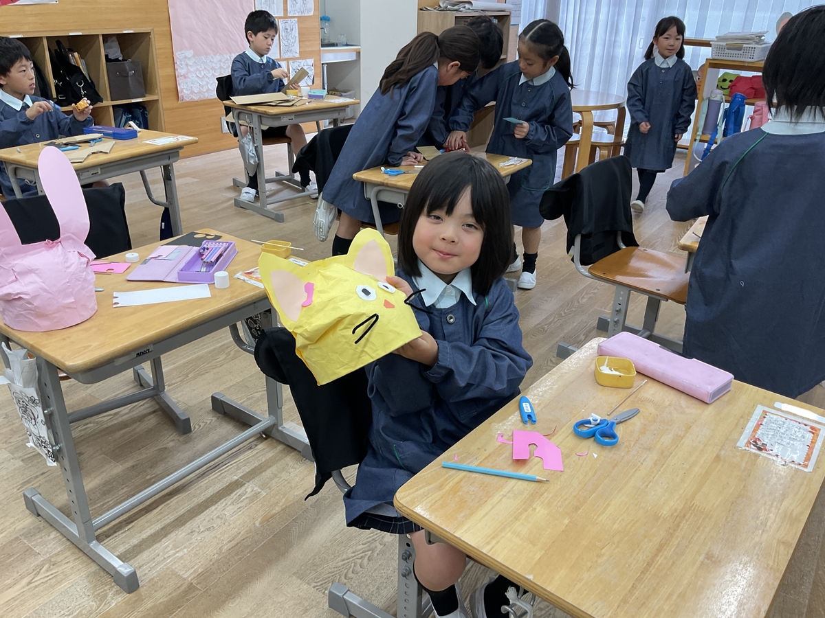 帝小の日々2025-213 ☆1年図工 がくげいかいのぼうしづくり☆