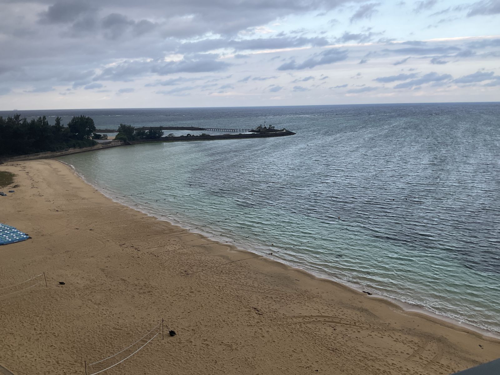 部屋から見える景色です。明るい中、改めてみると沖縄の海の美しさに魅了されますね。