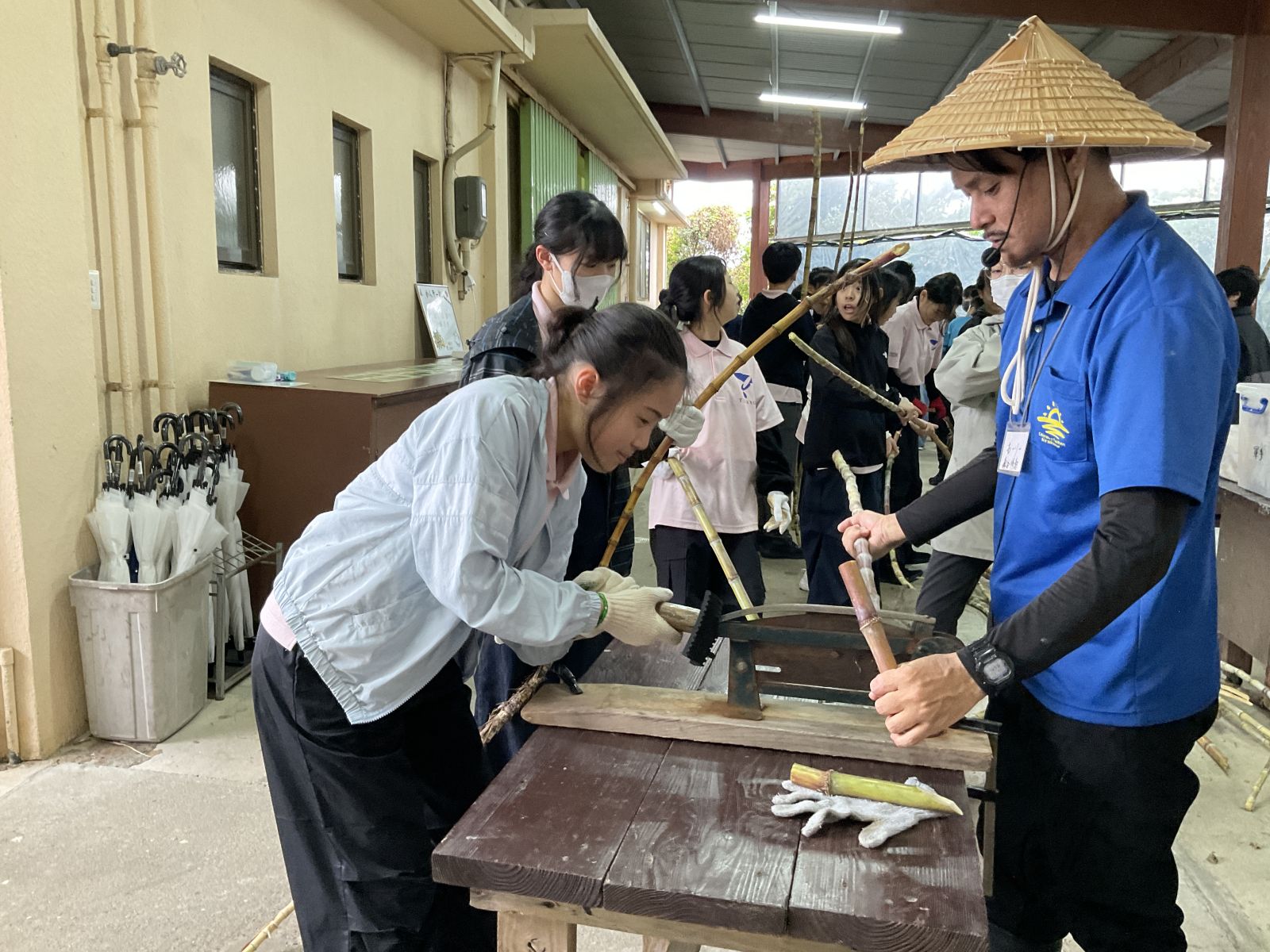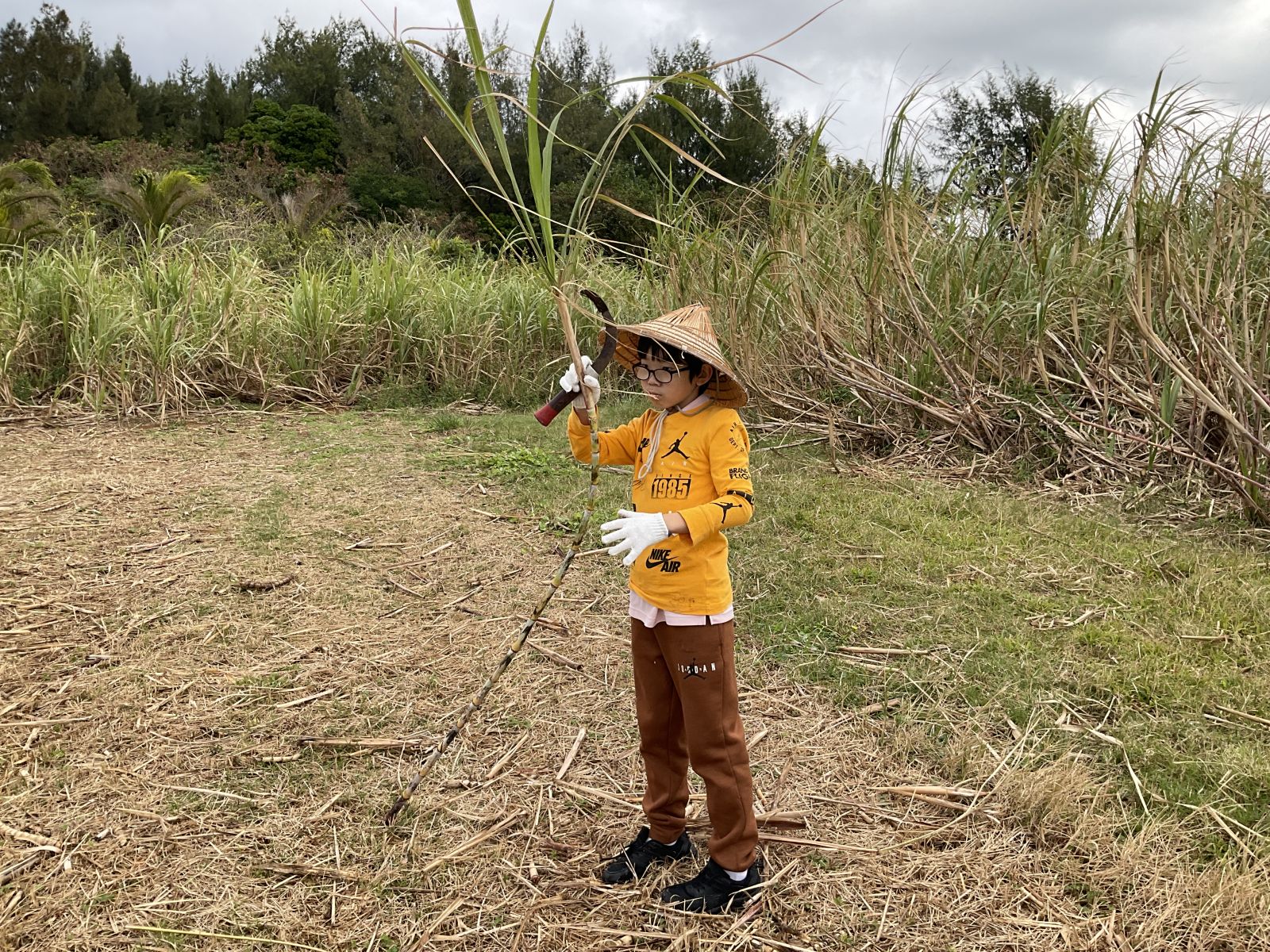 午前中はニライカナイでサトウキビ刈り体験です。