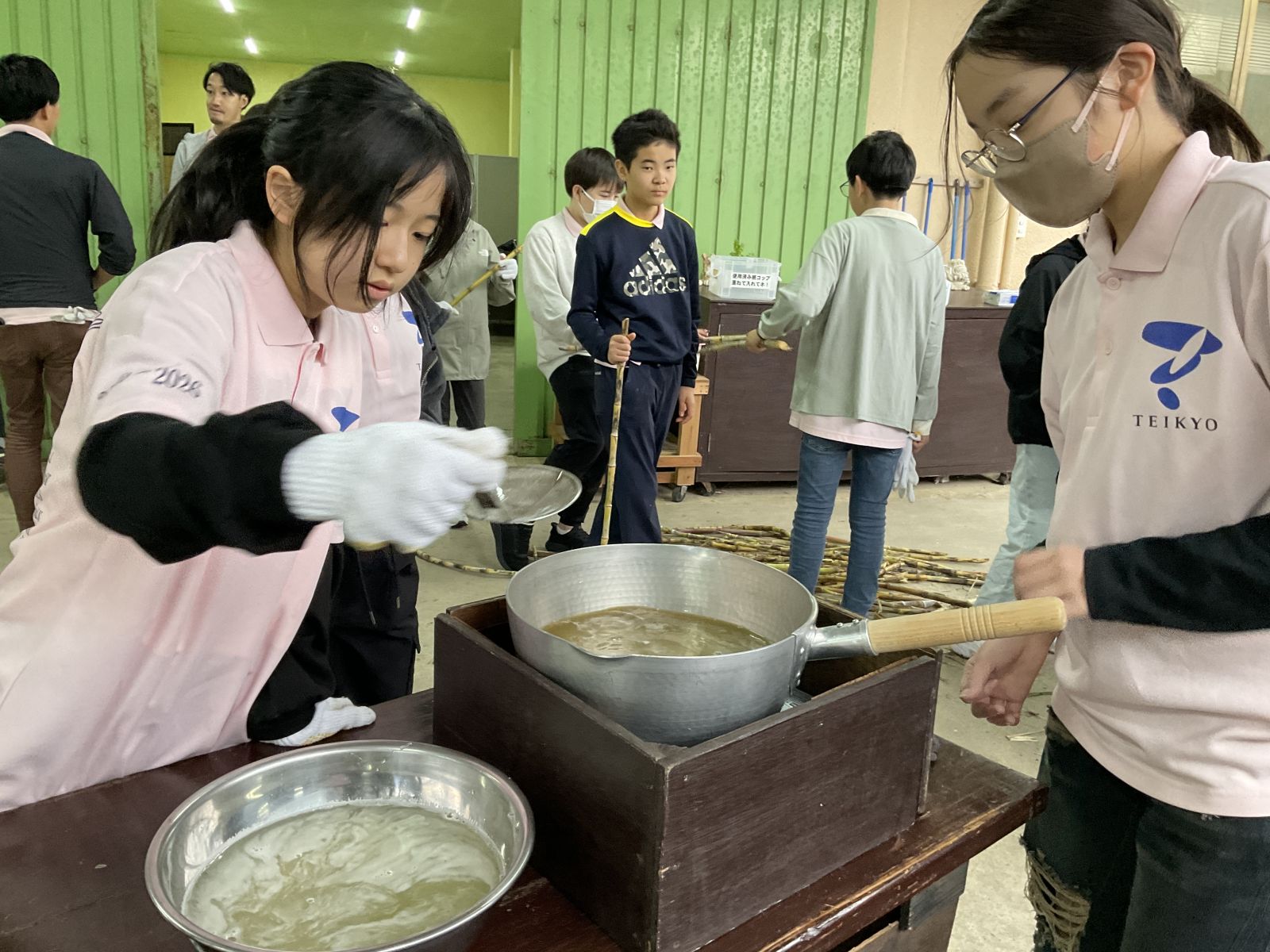 収穫したサトウキビは、機械で搾り、サトウキビジュースにしました。