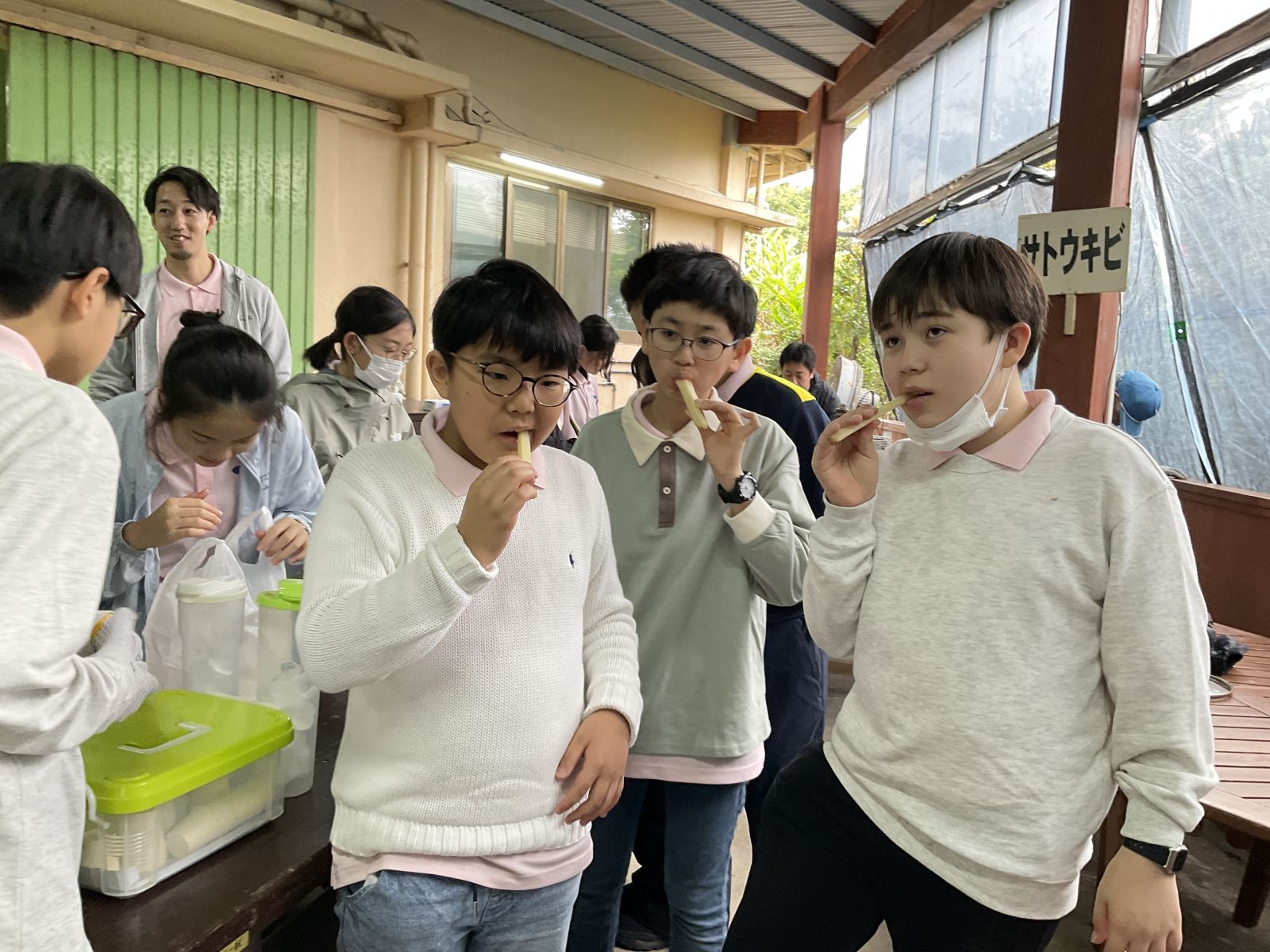 生のサトウキビもかじり…