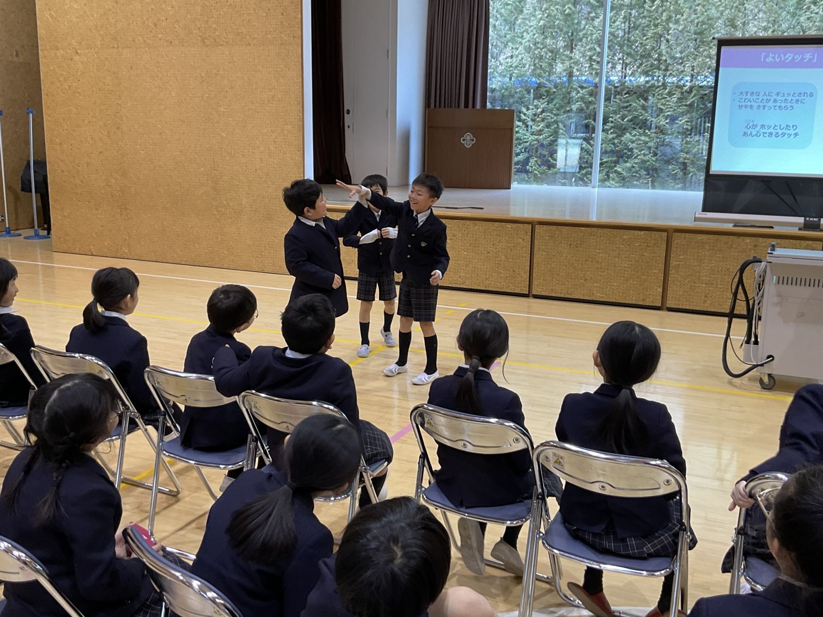 誰かに嫌なタッチをされたらどうするべきか、友だち同士でシミュレーションをしながら話し合いました。