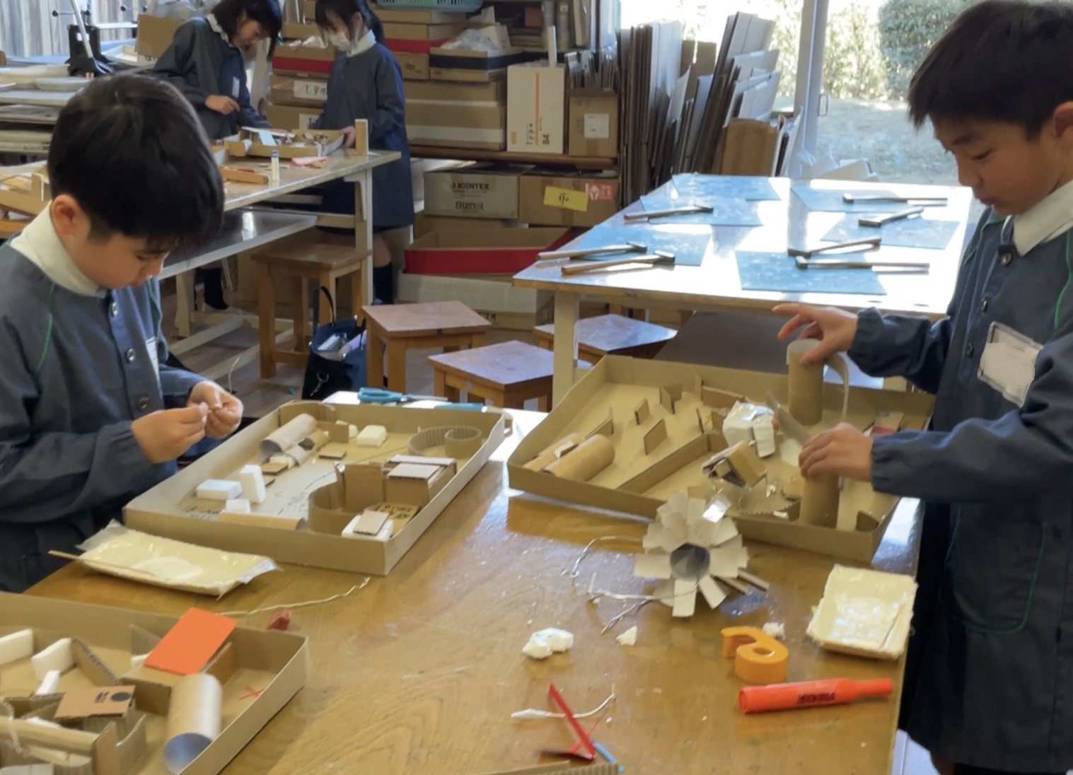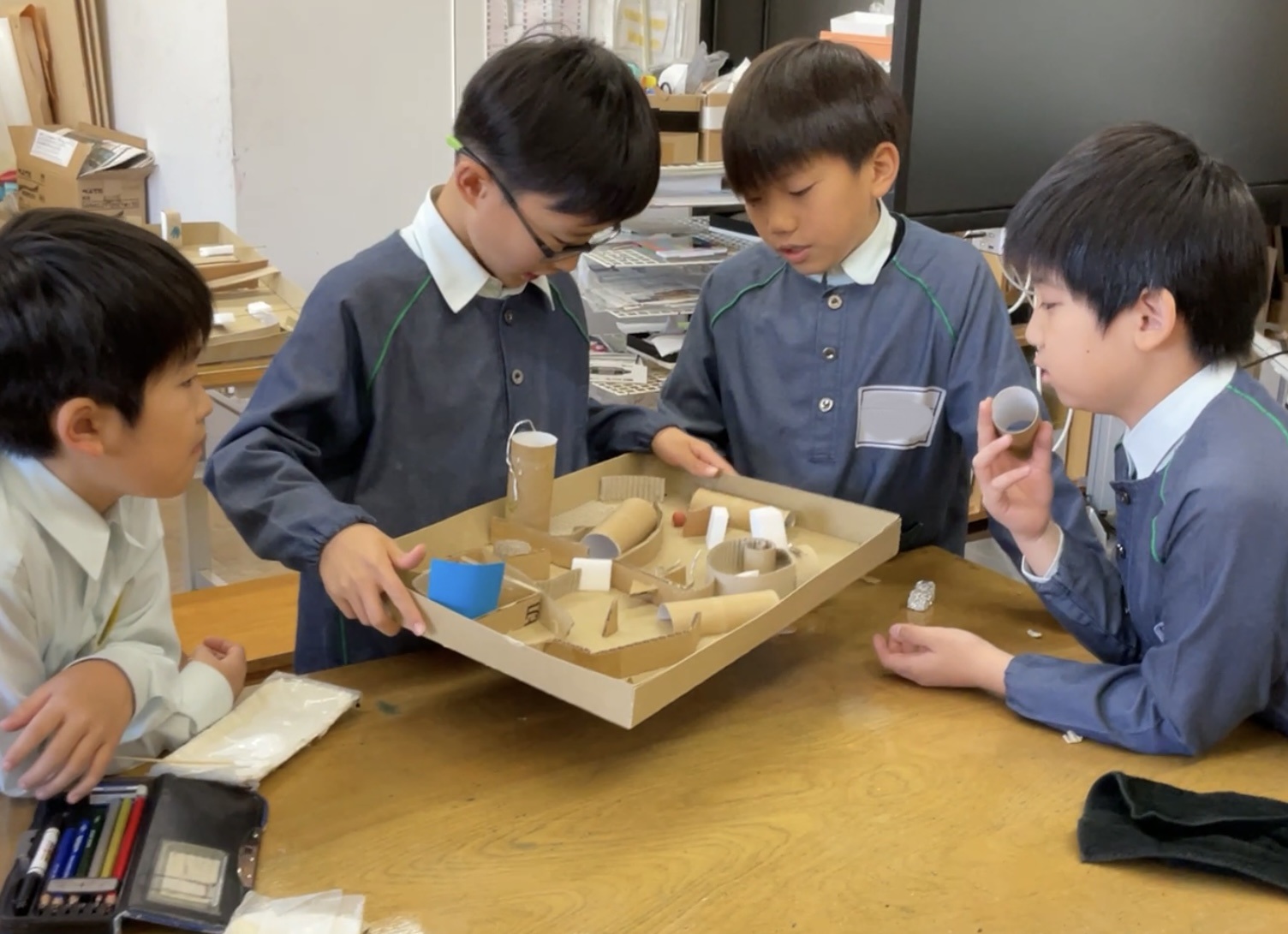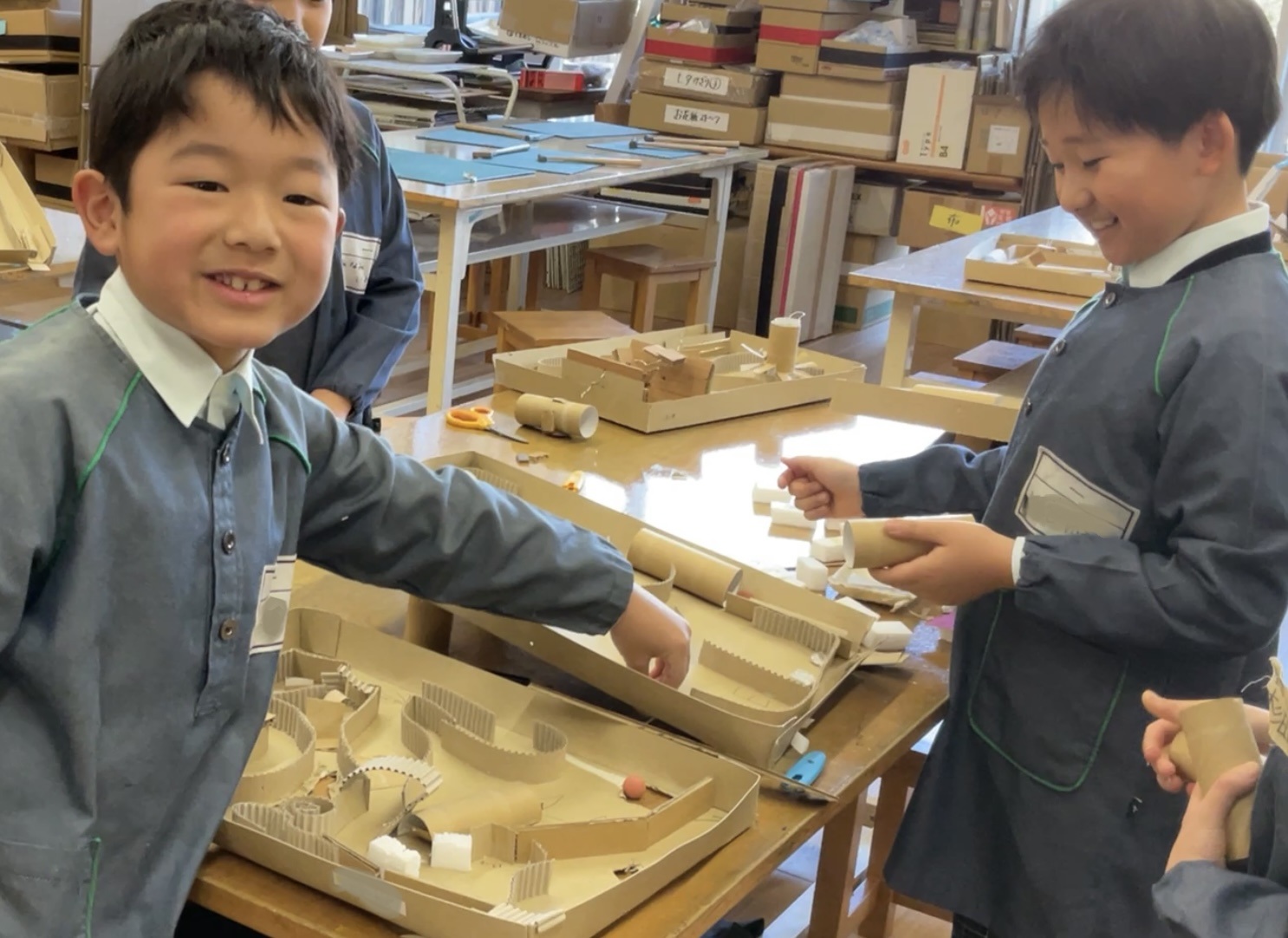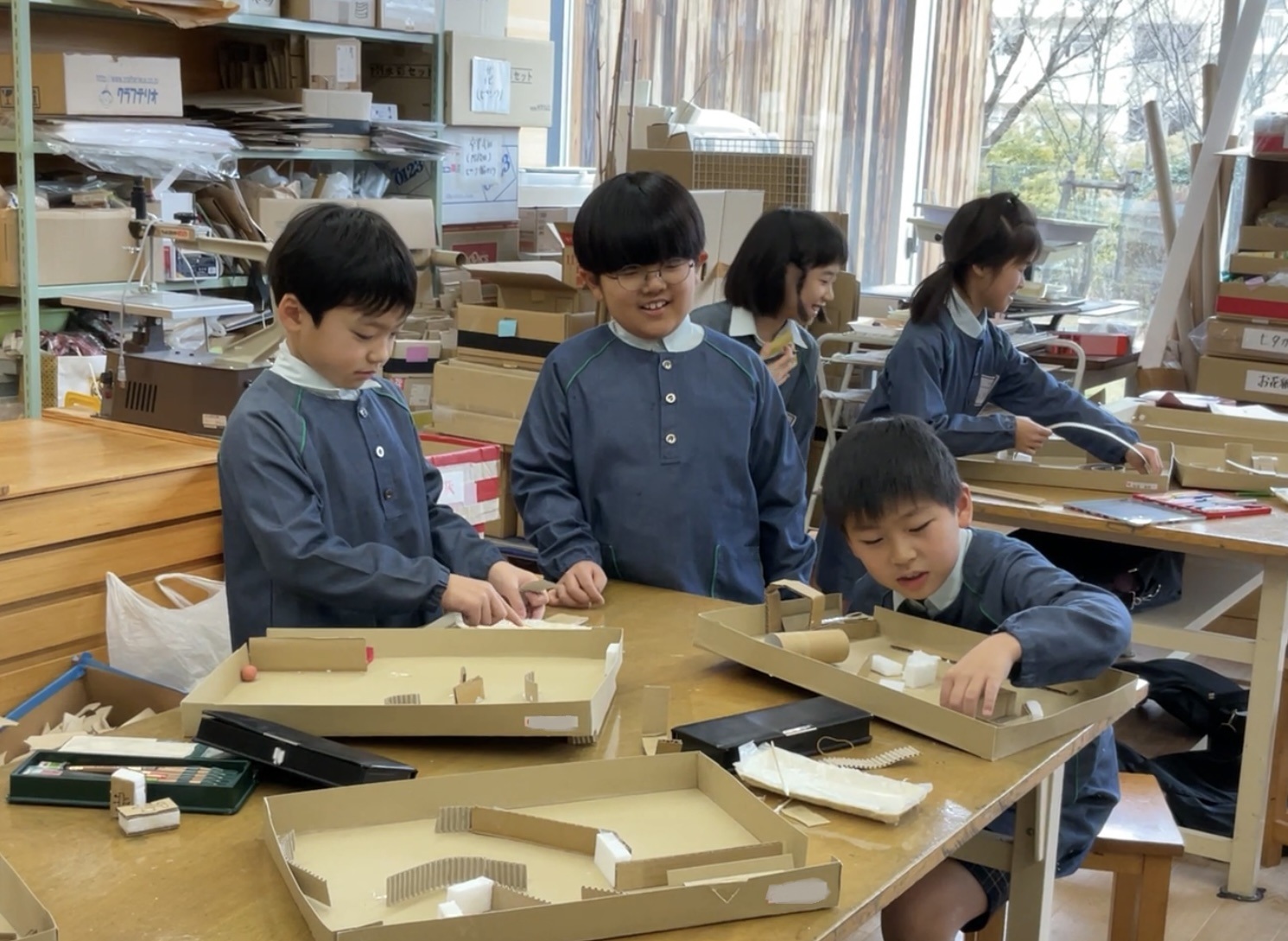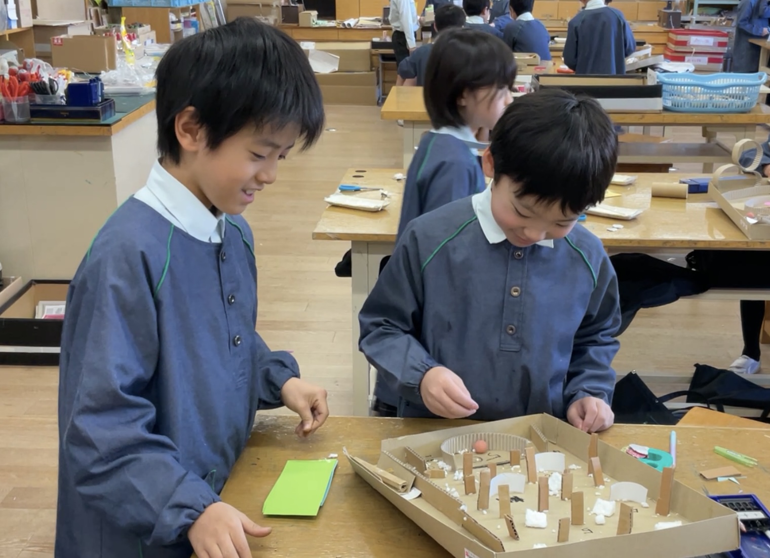 迷路やパチンコ、仕掛けを考えたり、発射台を工夫したり、試行錯誤を繰り返しながら制作中です。