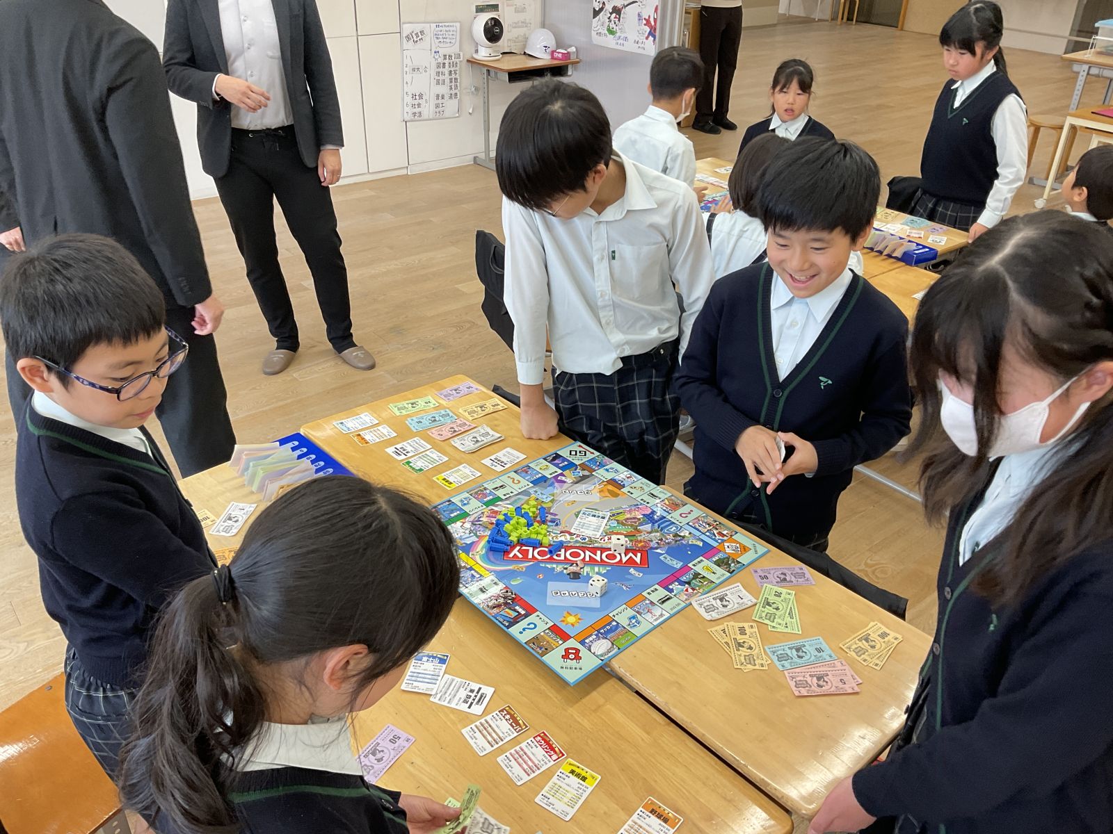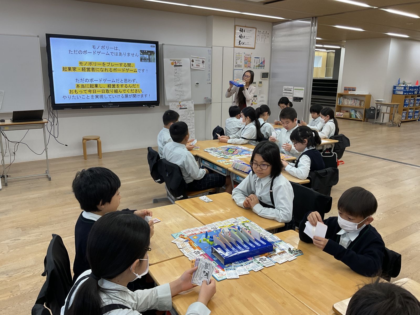 本日の「起業家教育」は経営者の方々を招き、モノポリーに挑戦しました。
