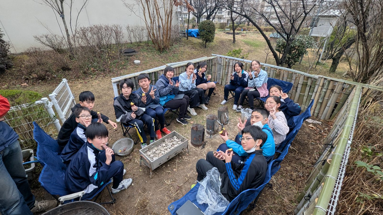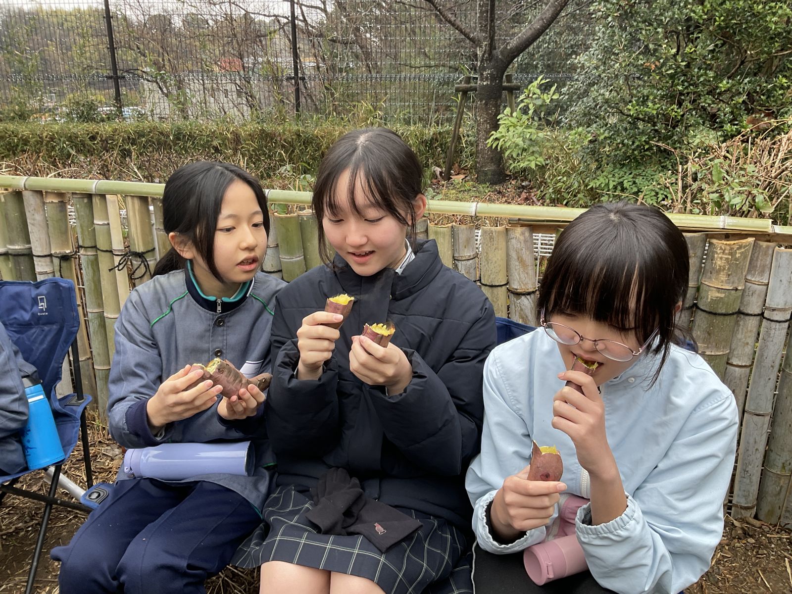 焼き芋を食べながら、里山での思い出や友達との雑談を楽しみました。