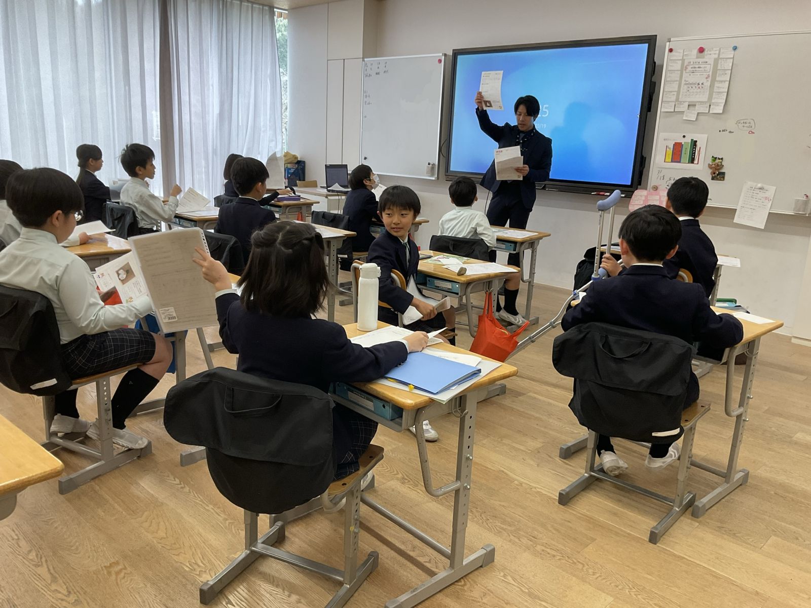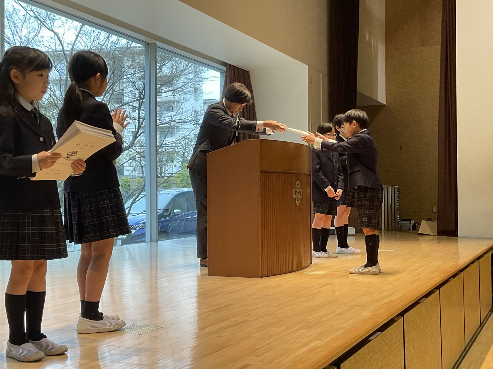 代表児童の子どもたちが、校長先生からあゆみを受け取りました。