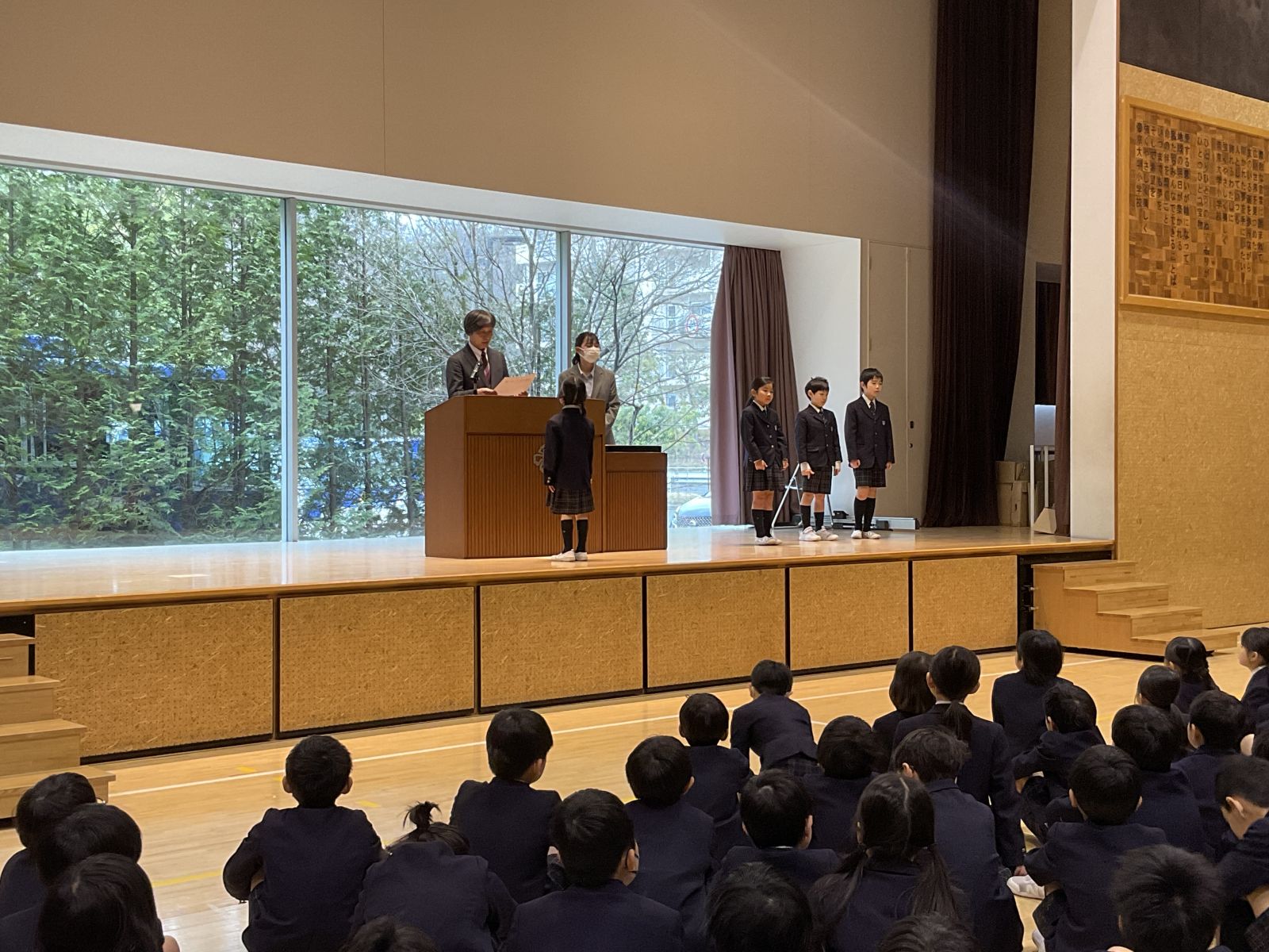 代表児童の言葉では、1年間頑張ったこと、来年チャレンジしたいことを話してくれました。