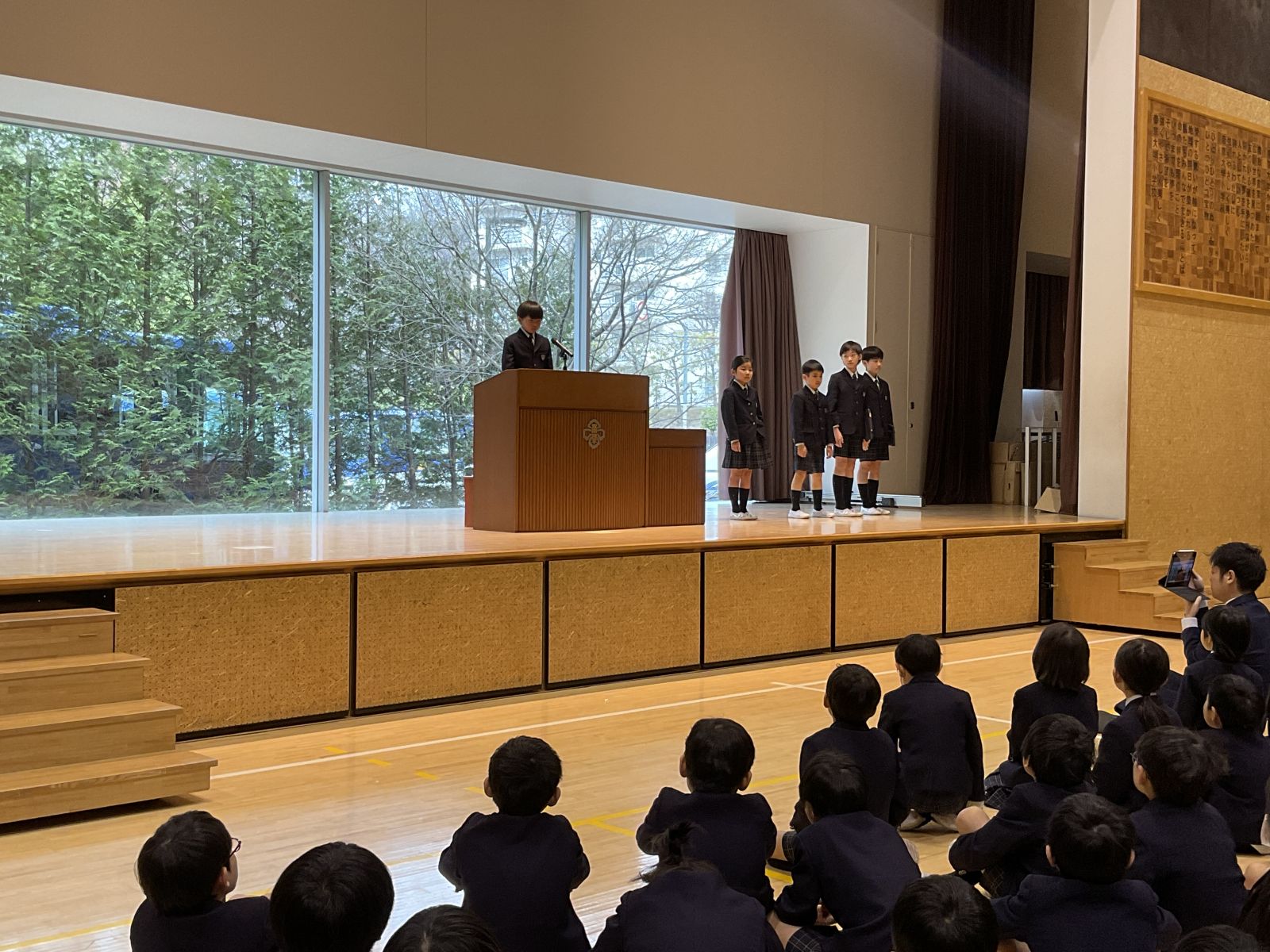 配布物を配ったり、1年間でたくさん本を読んだ子への表彰などをしました。