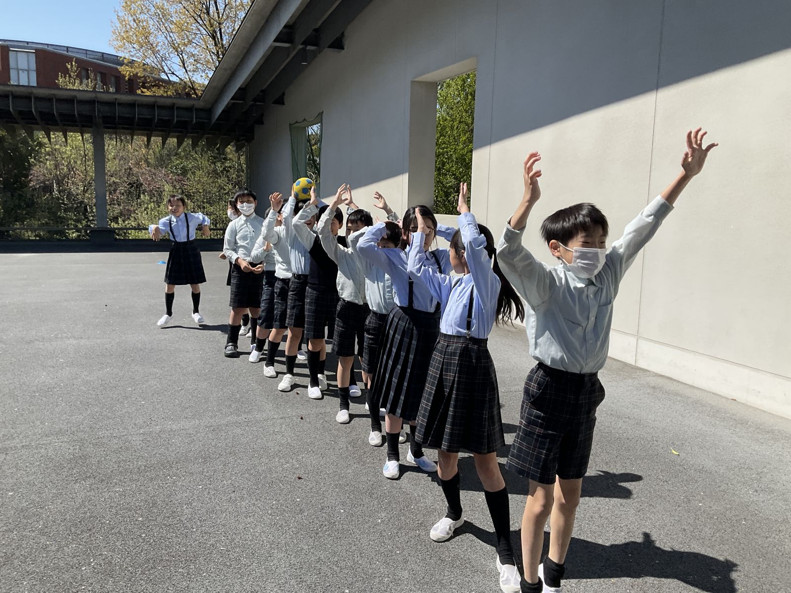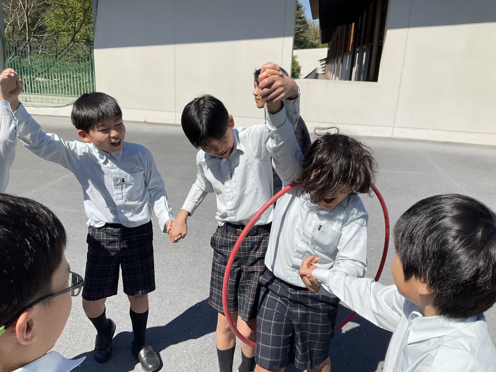 フラフープくぐりやボール送りを行いました。最初は遠慮がちだった子どもたちも、