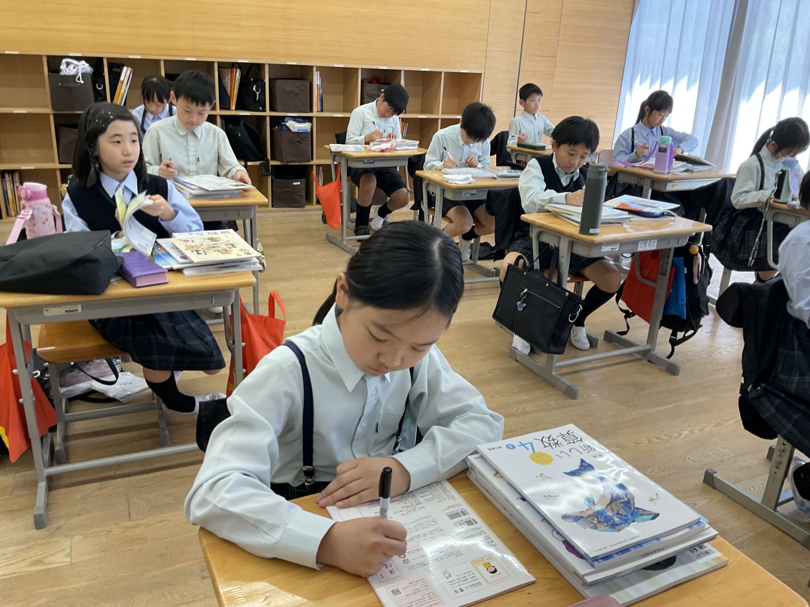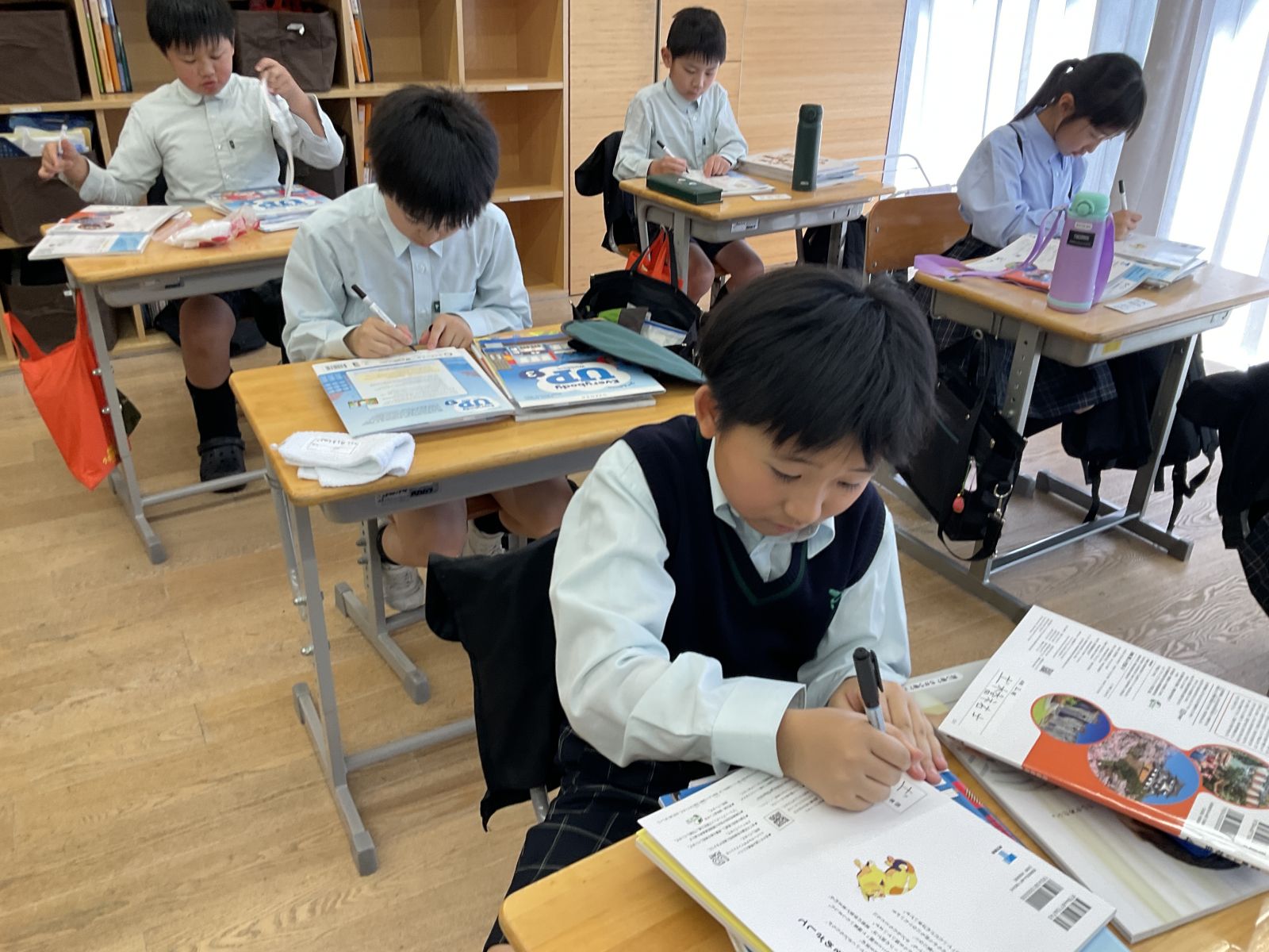 最後にクラスでの約束事を確認し、新しい教科書に丁寧に名前を書きました。
