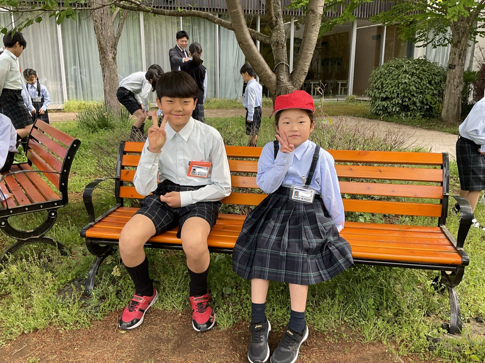 1年生も朝の準備が自分たちでできるようになったということで、校庭にお散歩に出てみました!!