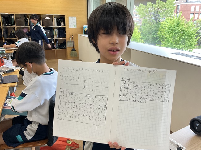 しっかりと調べ学習に取り組む子、