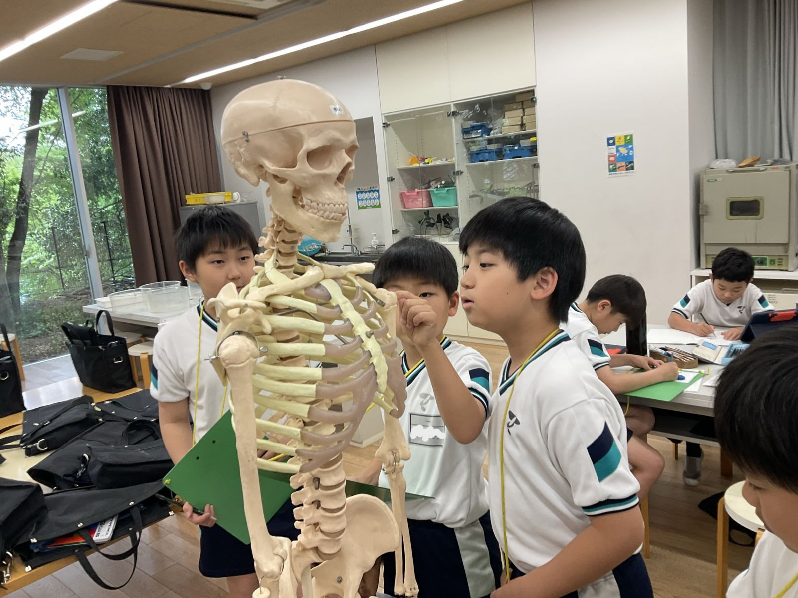 その後は、人体模型を使って骨と関節の仕組みについて調べました。