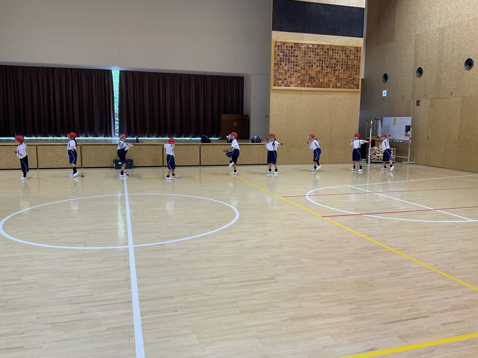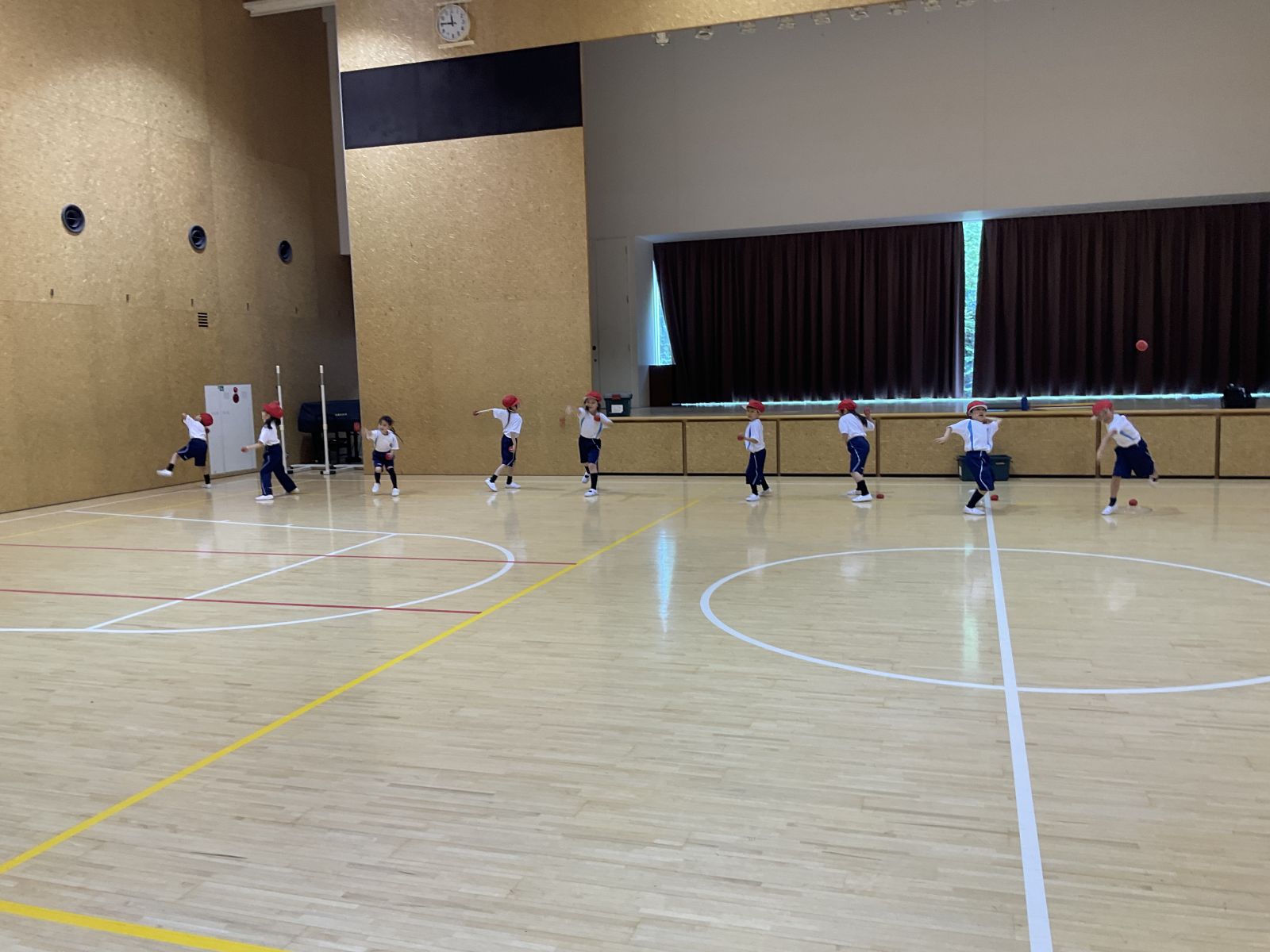 今回の1年生の体育ではボールをたくさん投げてみました。