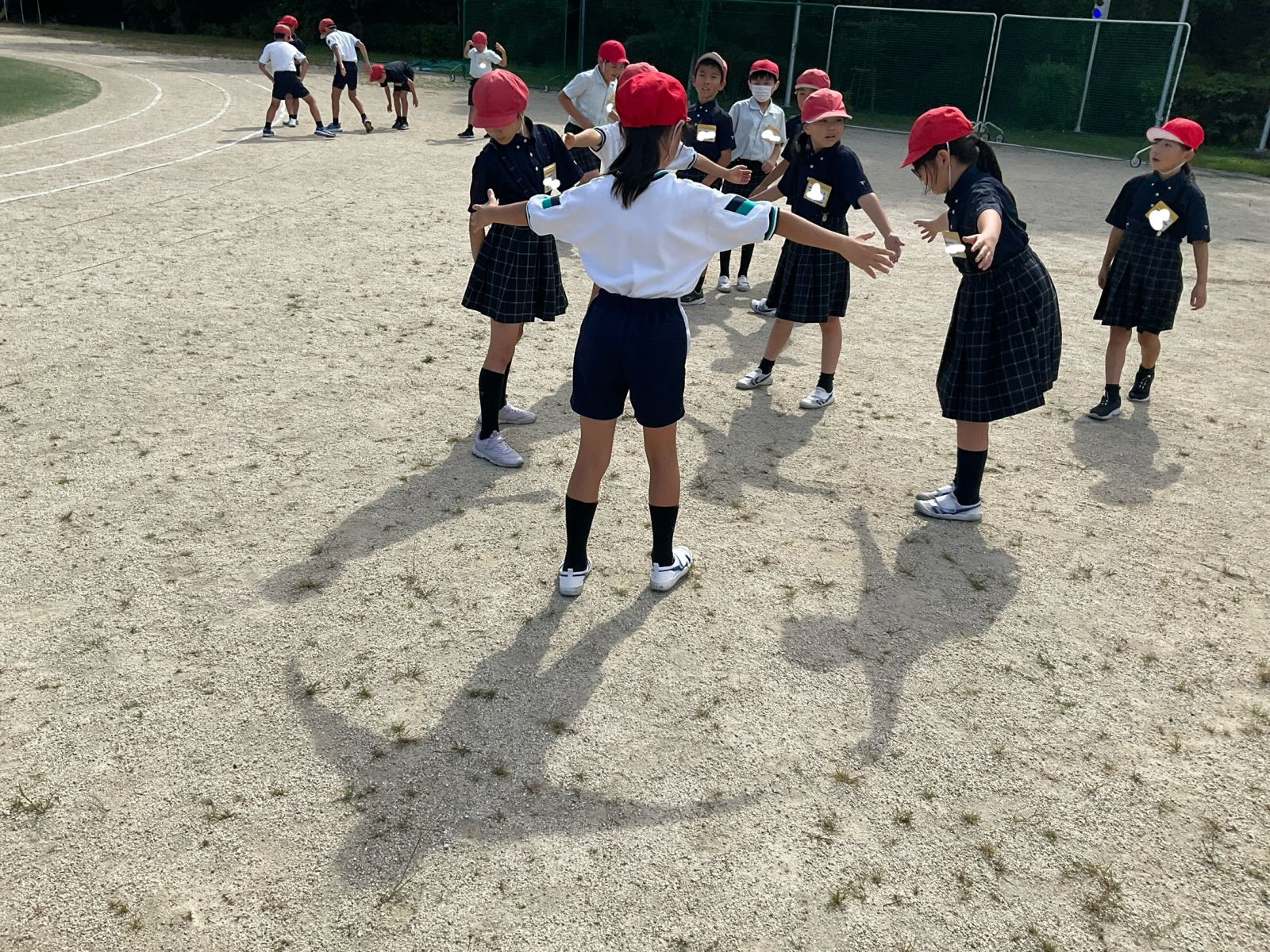 ルールは友達の体に触れないで、影と影とをつなぎます。