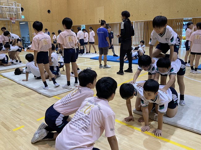スーパーマンの練習では、6年生にアドバイスを貰いながら練習に取り組んでいます。