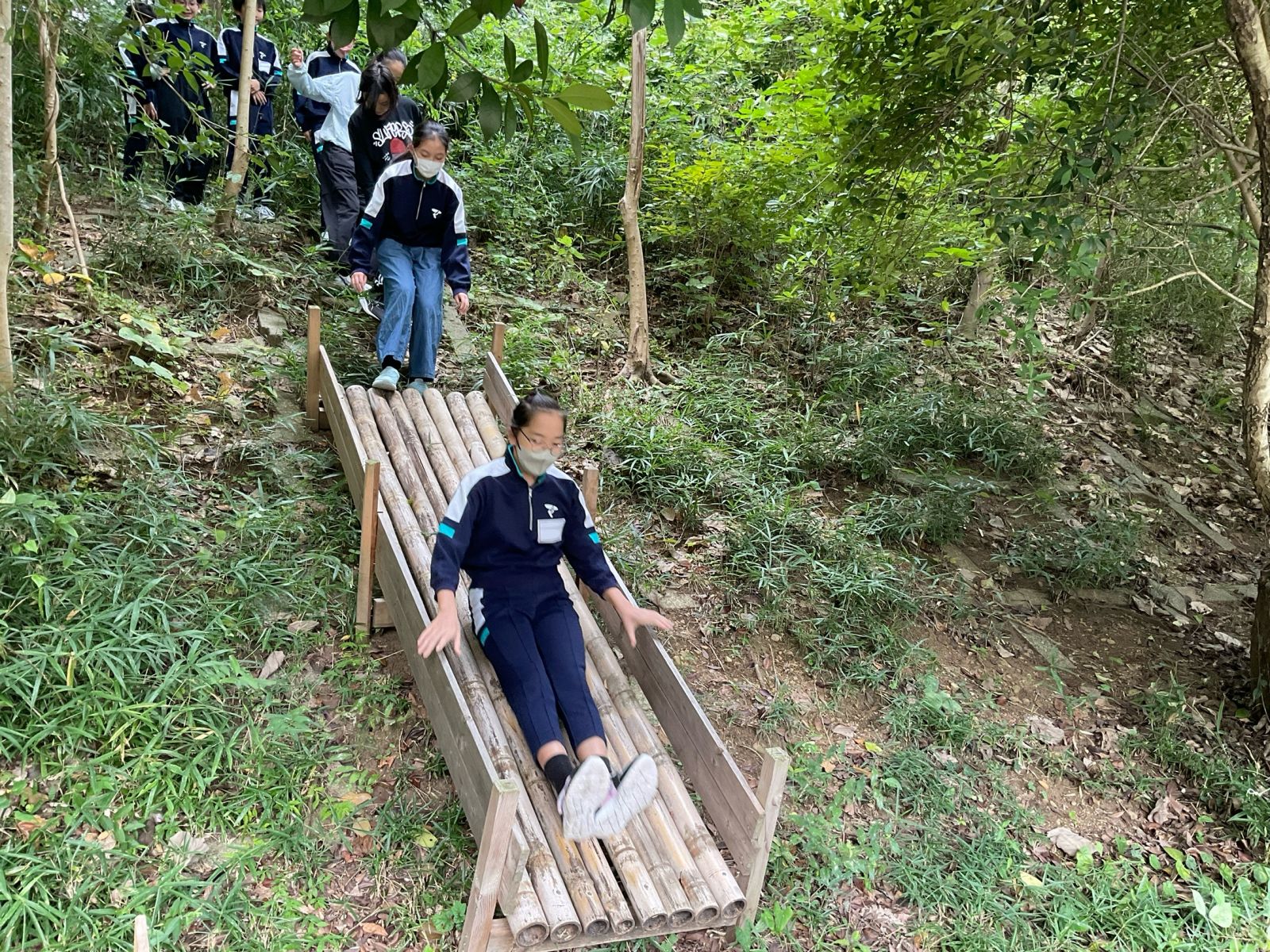 ぽんぽこ山では、先輩たちがつくった階段と滑り台を体験しました。