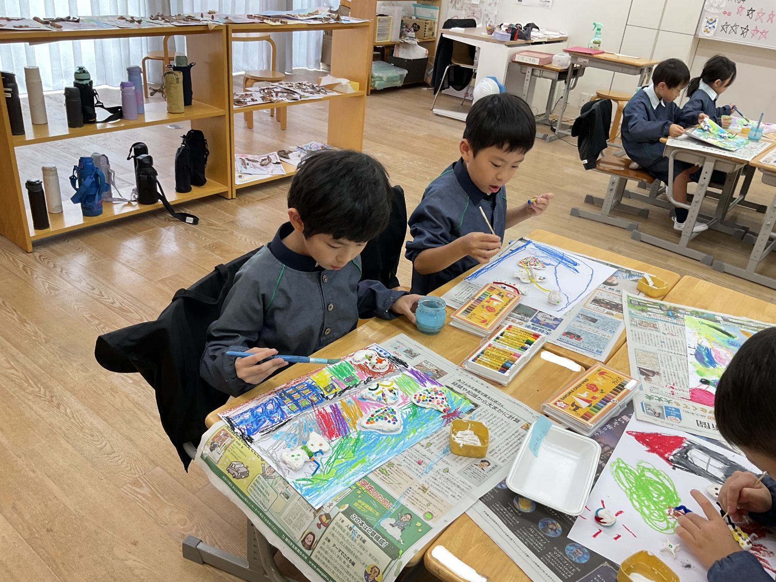 帝小の日々2025-185 ☆1年図工 かみねんどのレリ-フ☆