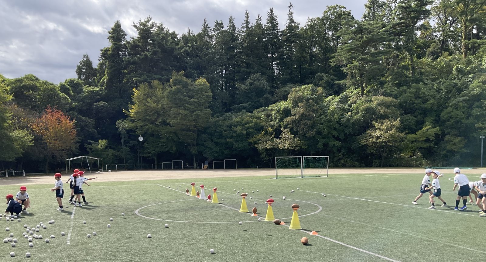久しぶりのグラウンドでの体育ということでたくさん走ってボールを投げました。