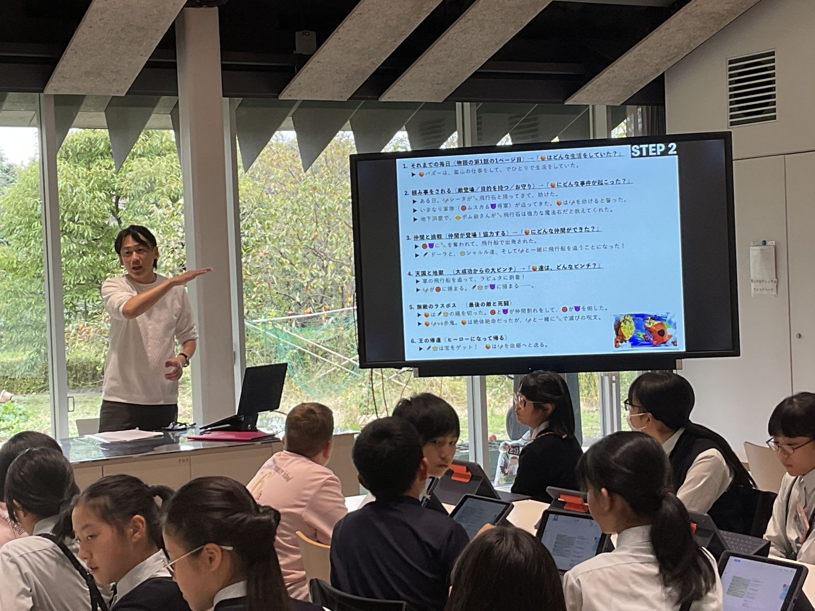 「最初の文章がワクワクする」「話の設定がいいね」など感想を伝え合い、授業を終えました。