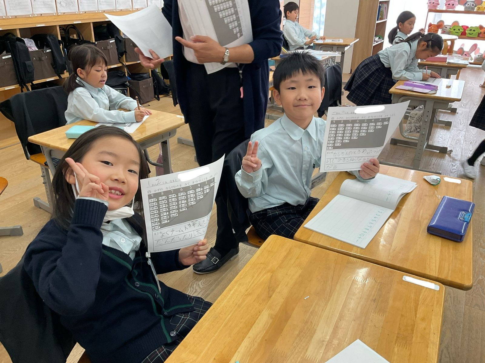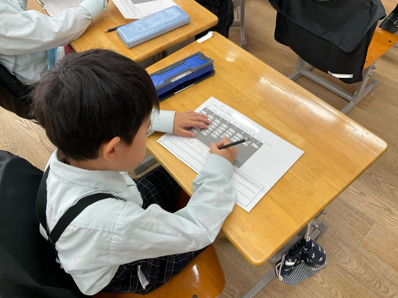 「縦に見ると数が順番に並んでいる!」「斜めに見ると右の数が2個ずつ増えているよ!」とペアと伝え合いながら学習しました。