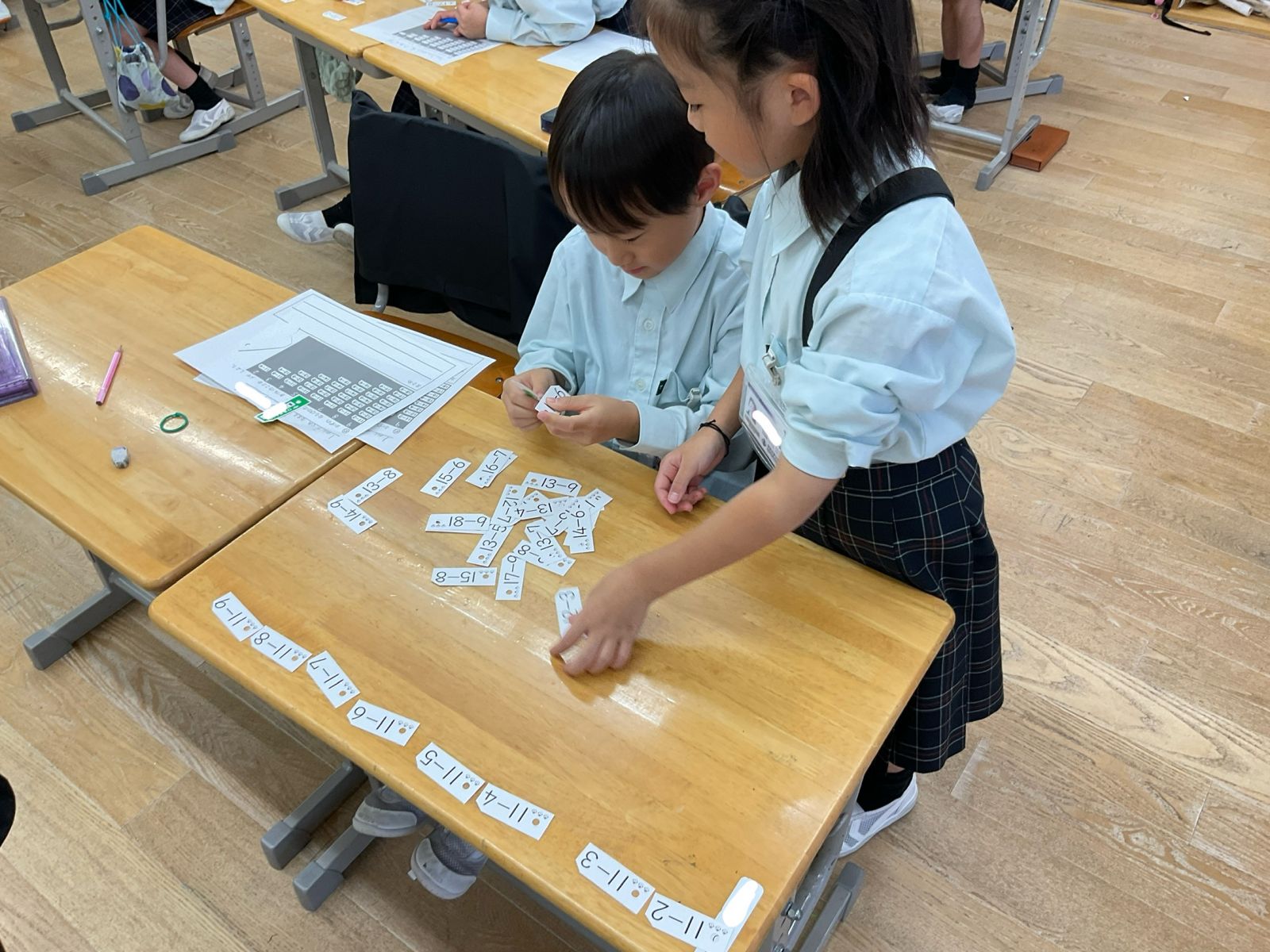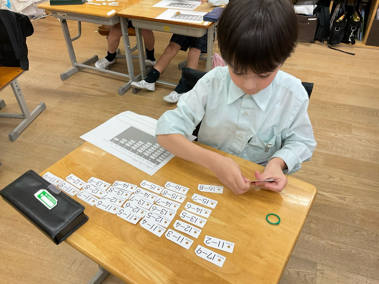 算数のひき算で、計算カードがどのように並べられているのか調べました。