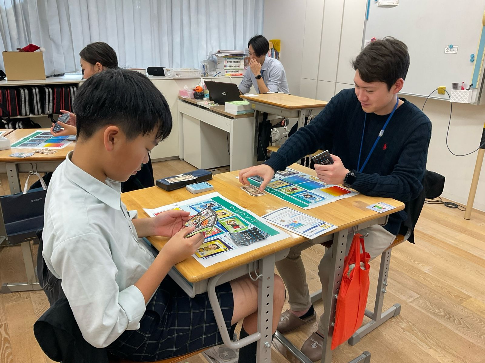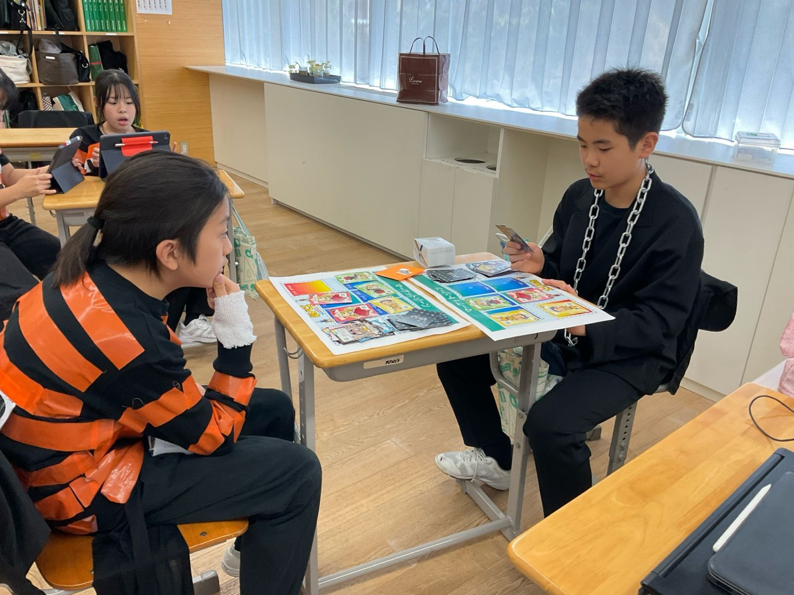 前回から今回までの間に、休み時間にエコノミカで対戦する児童たち…