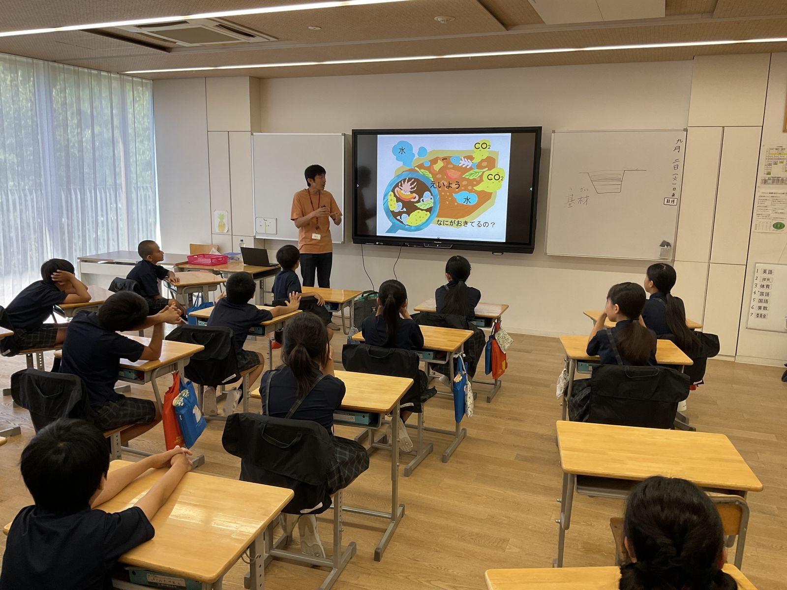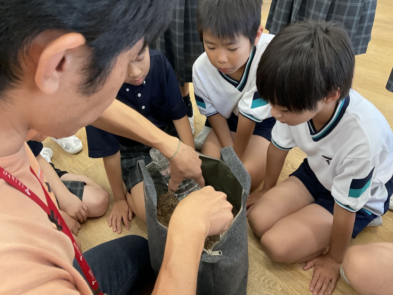 4年生では、社会科と探究科を関連させた里山教育の一環として、生ごみコンポストの学習に取り組みました。