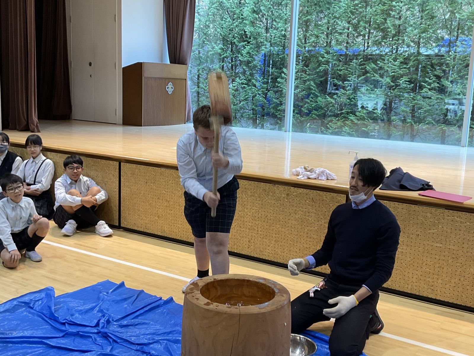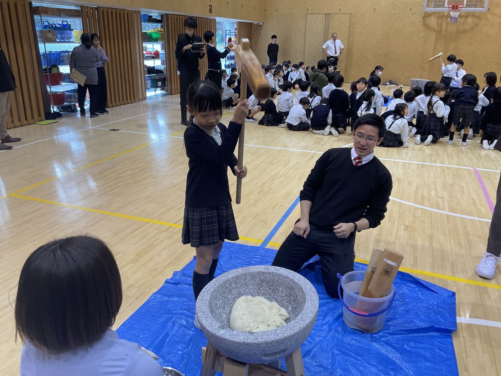 終業式のあとは、もちつき大会です。