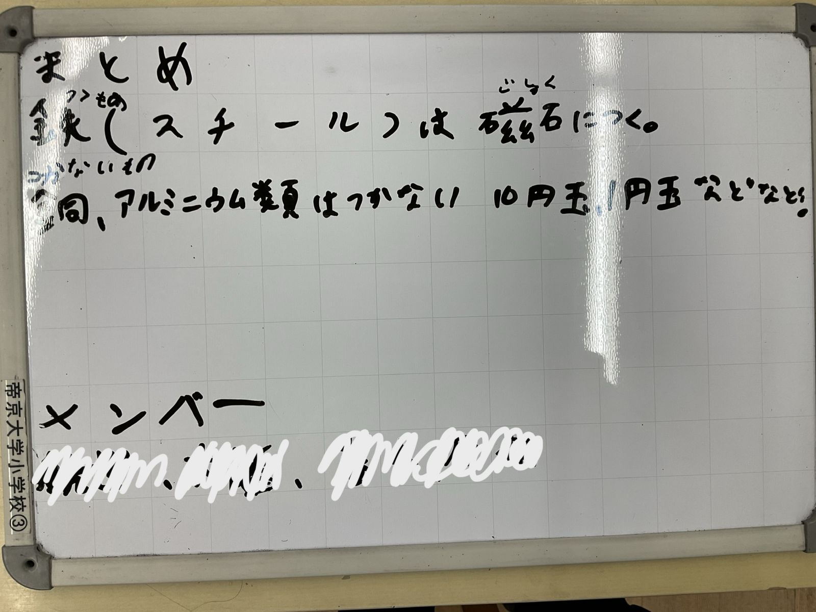 よく話し合い、「鉄は磁石につく」ということをまとめることができました。
