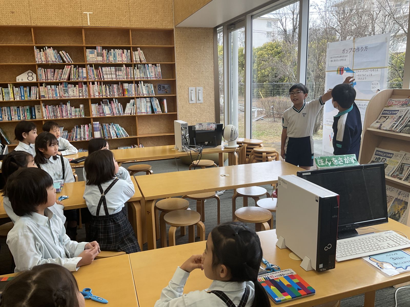 1年生でも理解できるようにポップを「自分の好きな本を周りの友達にも好きになってもらえる魔法のカードだよ」と説明していました。