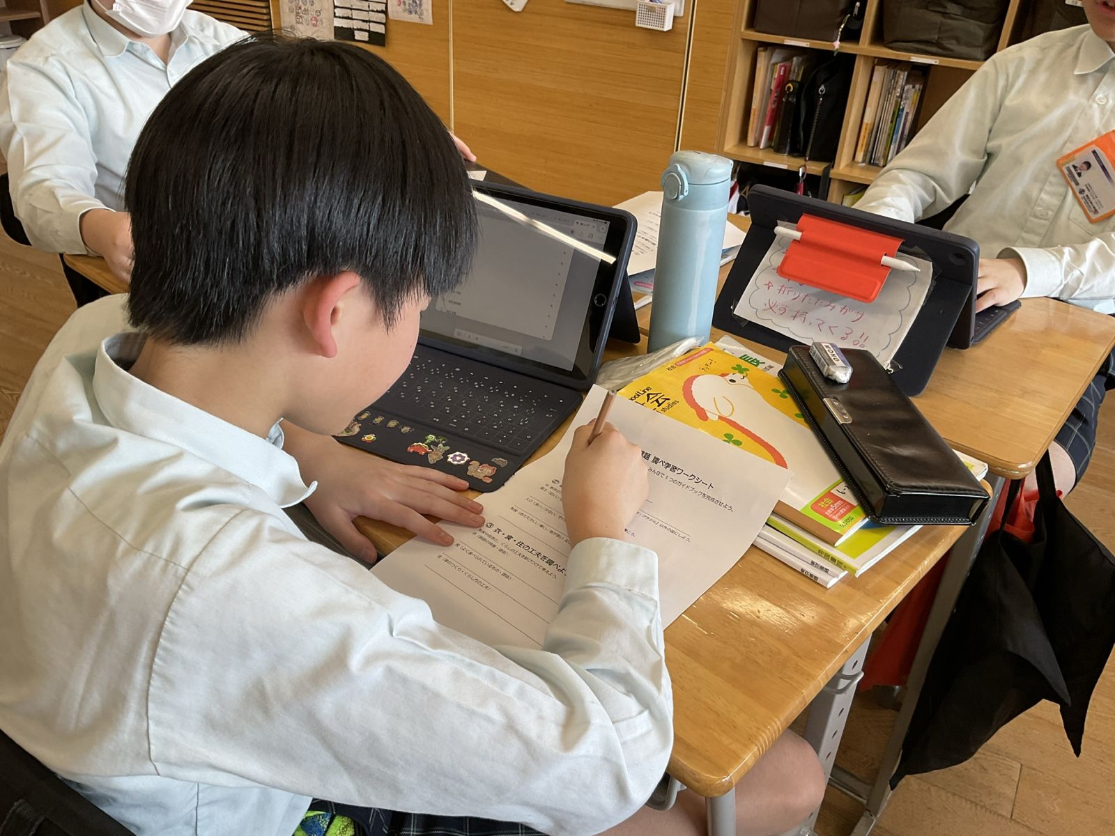 ワークシートをもとに友達と相談しながら進めていきます。