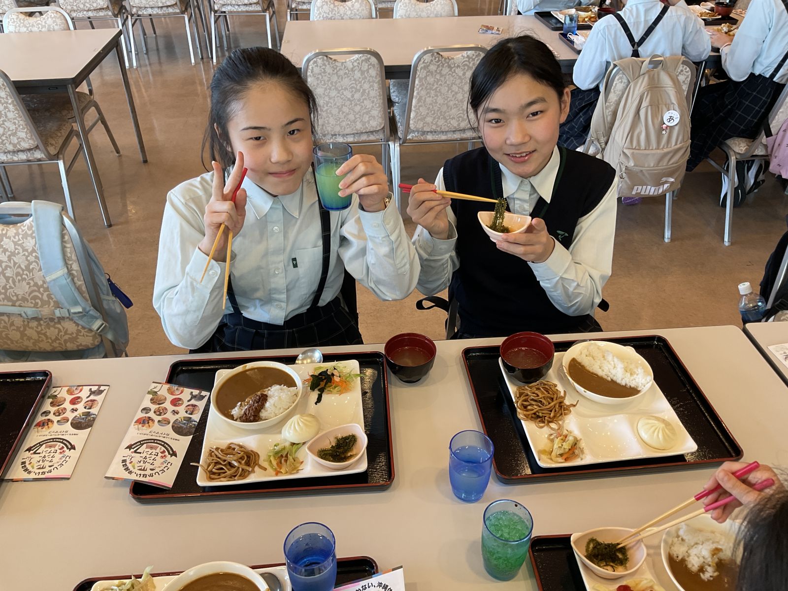 空港を出てはじめに向かったのはおきなわワールドです。お昼ご飯のバイキングでは、沖縄ならではの料理に興味津々です。