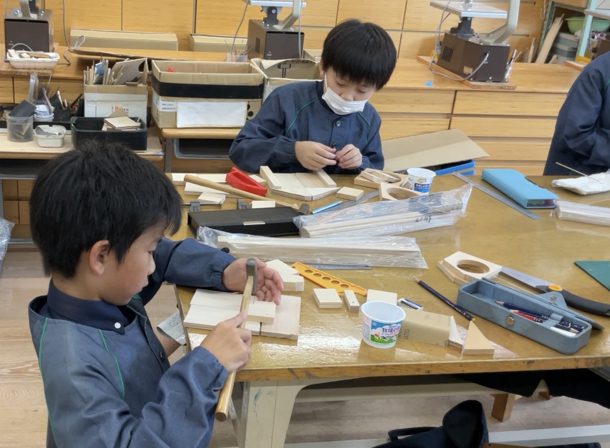 帝小の日々2025-160 ☆3年図工 木工作「ギコギコトントン木の乗り物」☆