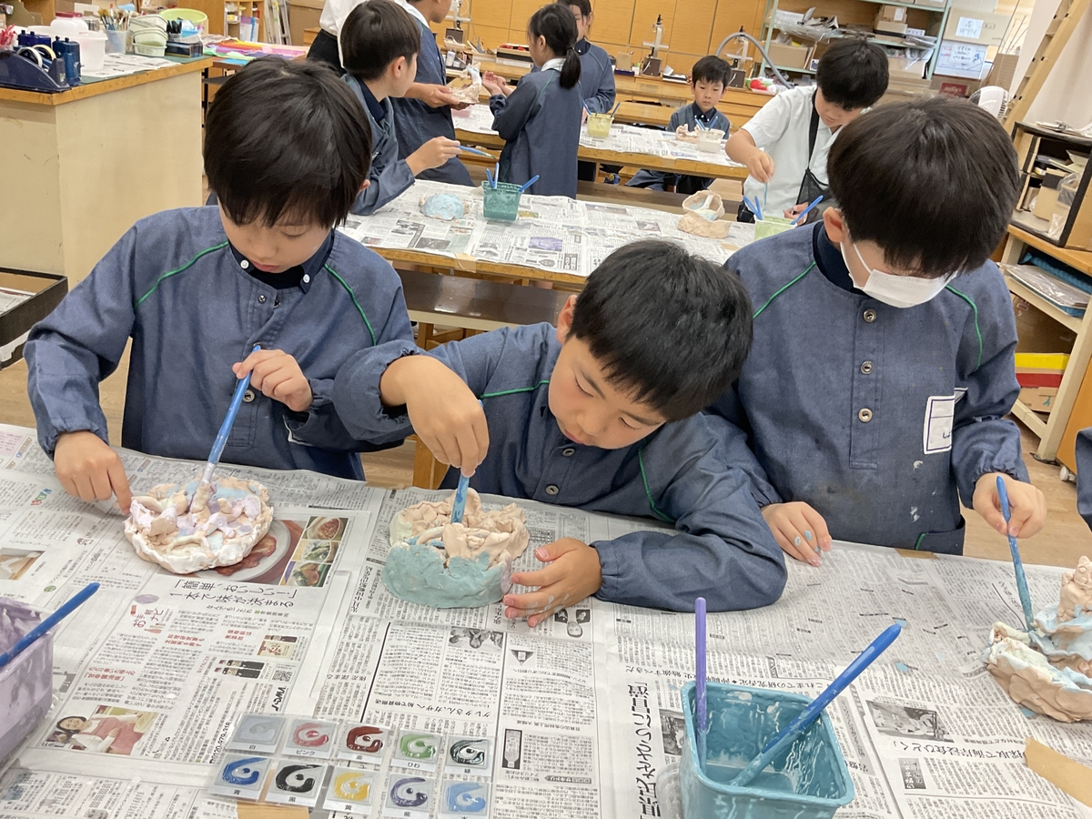 帝小の日々2025-121 ☆3年図工 陶芸制作「泉のある島」釉がけ☆