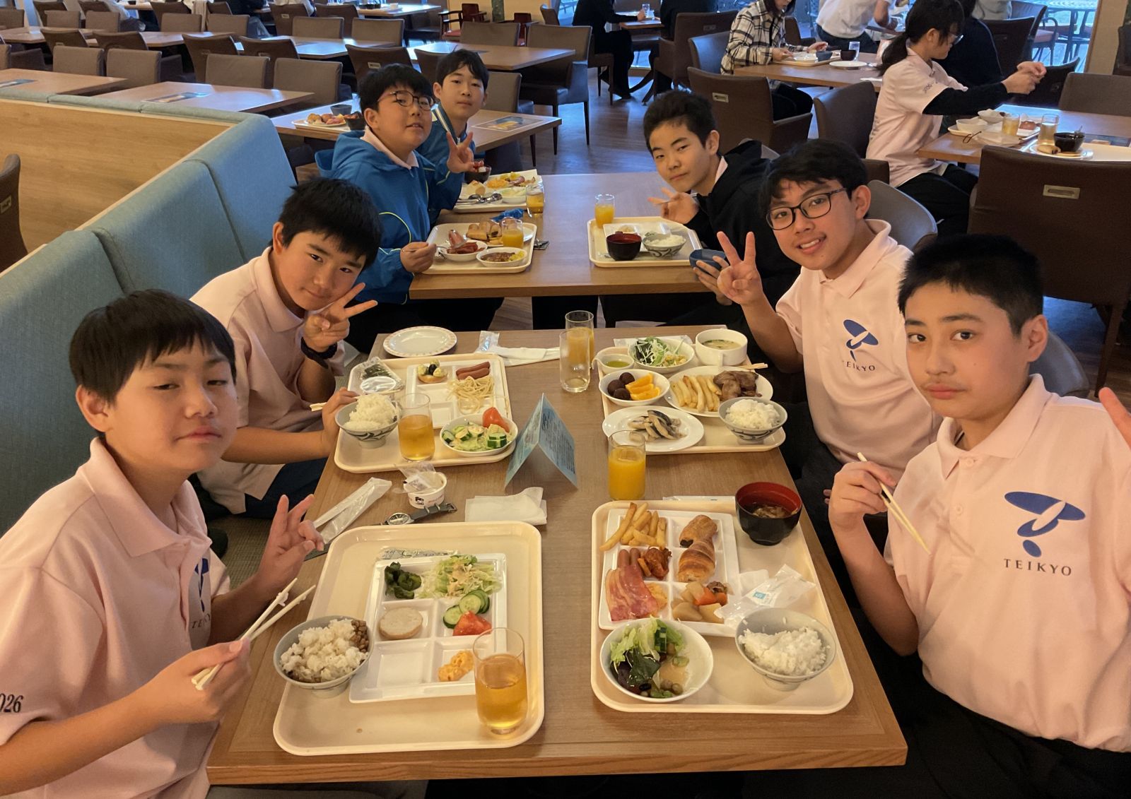 沖縄修学旅行3日目。朝ごはんをたくさん食べて、元気を蓄えます。